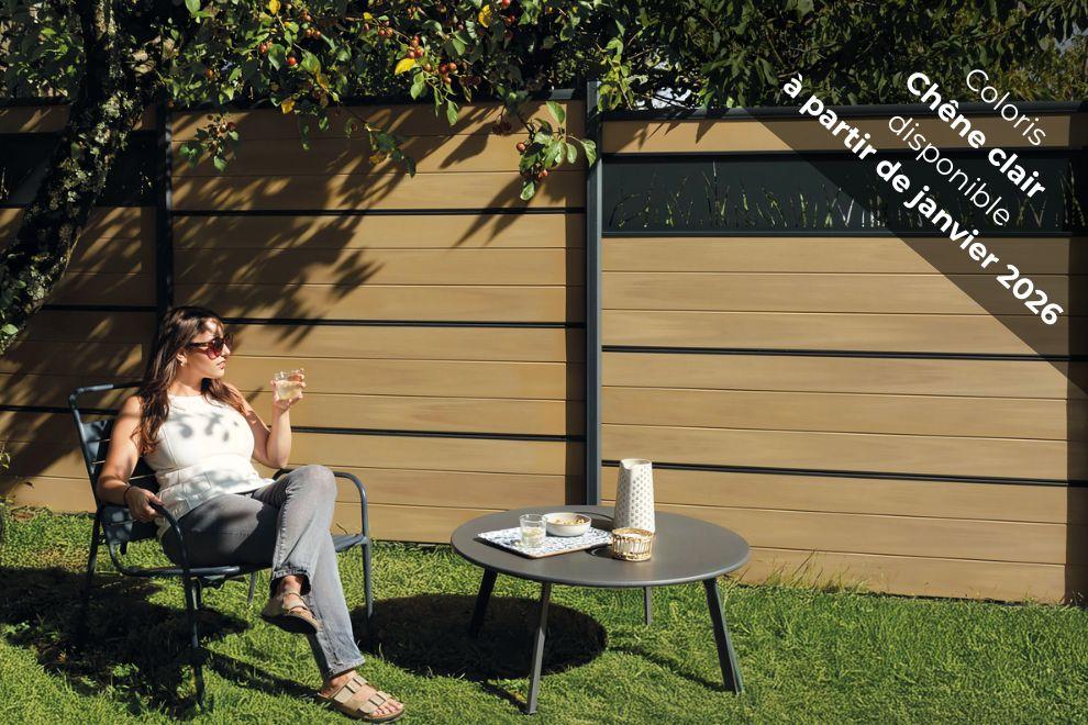 Notre clôture composite Atmosphère s’installe à merveille en panneaux de clôture, brise-vues, brise-vents, muret etc.