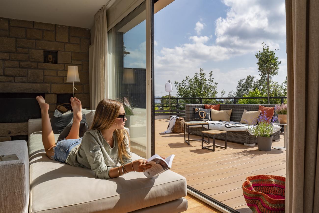 Vous souhaitez que la couleur de votre terrasse en bois composite n’évolue pas dans le temps ? Nos terrasses Atmosphère coextrudées gardent l’intensité de leur couleur au fil des saisons.